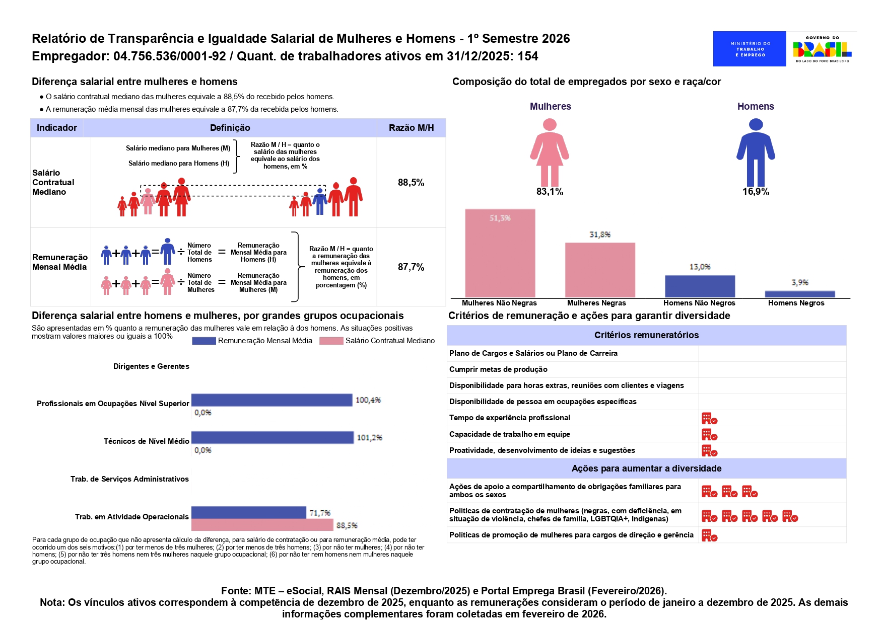 Relatório de Transparência e Igualdade Salarial de Mulheres e Homens – 1º Semestre 2026